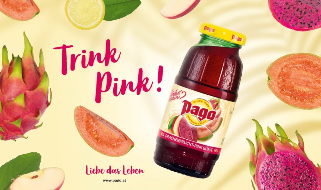 Trink Pink! PAGO sorgt mit der neuen Limited Edition Drachenfrucht-Pink Guave für intensive Genussmomente. Erleben Sie die unverwechselbare Kombination von erfrischend fruchtiger Drachenfrucht und süß-säuerlicher Pink Guave. Der Geschmack von reifen Äpfeln und die Frische von Zitronen runden die Komposition zu einem Getränk ab, bei dem Urlaubsträume wahr werden.